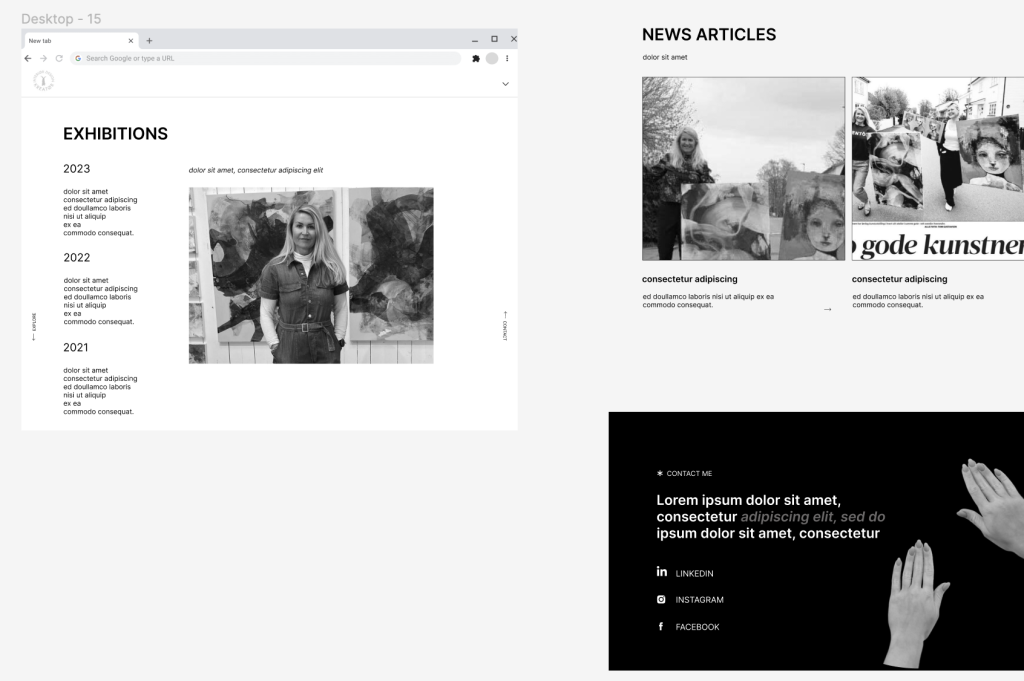 The order of the sections was important as to what information a user would be most interested in, what they would like to see first and what could be on a separate page all together. A perceiver goes to an exhibition to look at the art, not necessarily for the artist. That’s why the sectioning included the artwork and exhibitions before the artist’s information to focus on their art and achievements.